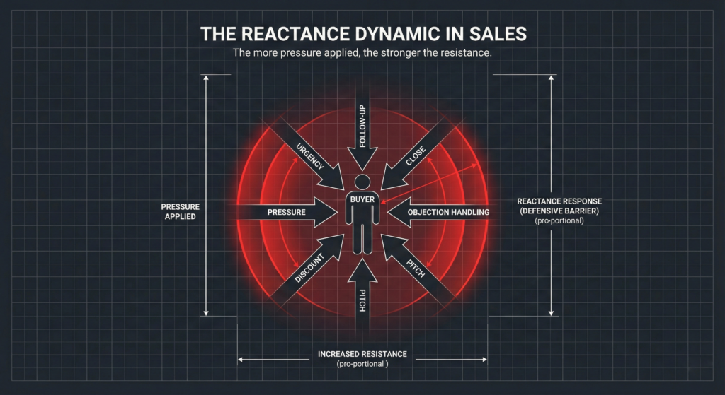 The answer has been sitting in psychology research since 1966. It’s called Reactance Theory. And it should be required reading for anyone in sales.