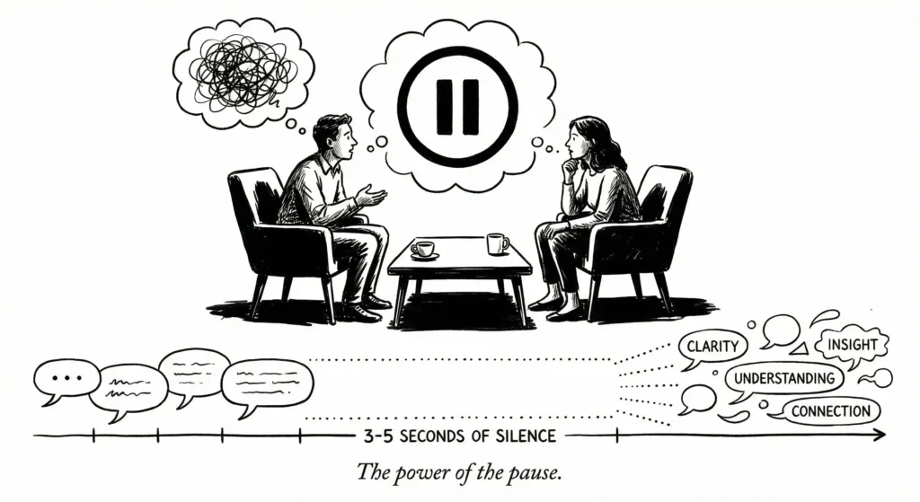 It’s excruciating at first. Every instinct screams to fill the space. To ask the follow-up. To keep the conversation “moving.”