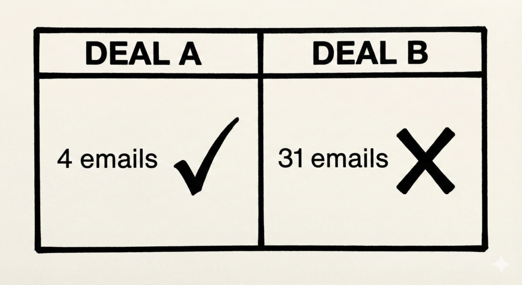 And the more Marcus pushed, the more the buyer pulled back. Thirty-one emails. Each one adding pressure. Each one triggering resistance.