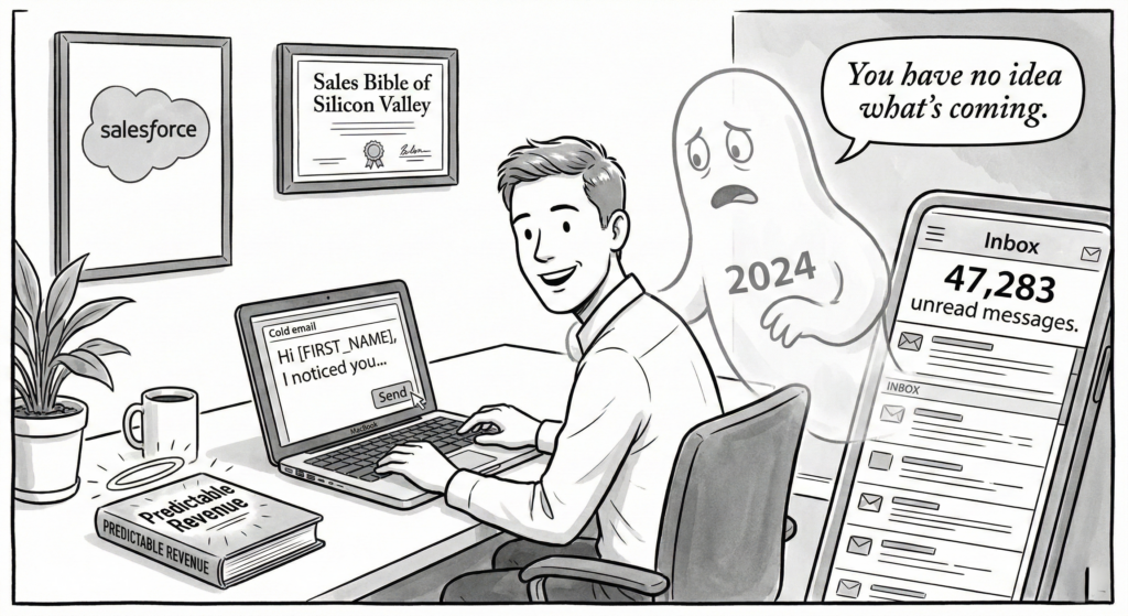 Predictable Revenue was designed before AI could generate thousands of “personalized” emails per hour, making every inbox a war zone.