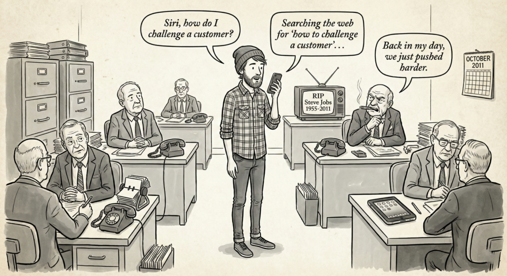 The iPhone 4S had just launched with Siri – the first mainstream voice assistant. Steve Jobs died that year. Snapchat launched. Instagram was about one year old.