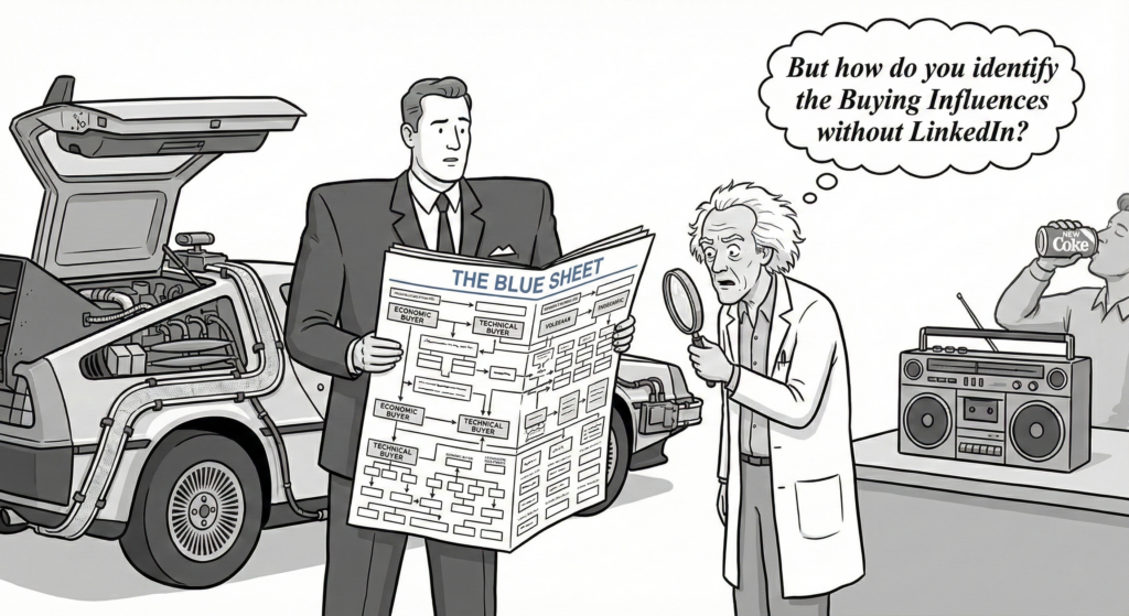 Cell phones existed, but they weighed two pounds and cost $4,000. The World Wide Web was still four years away. If you wanted to identify the “Buying Influences” in an account, you asked your buddy if he knew anyone at the company.